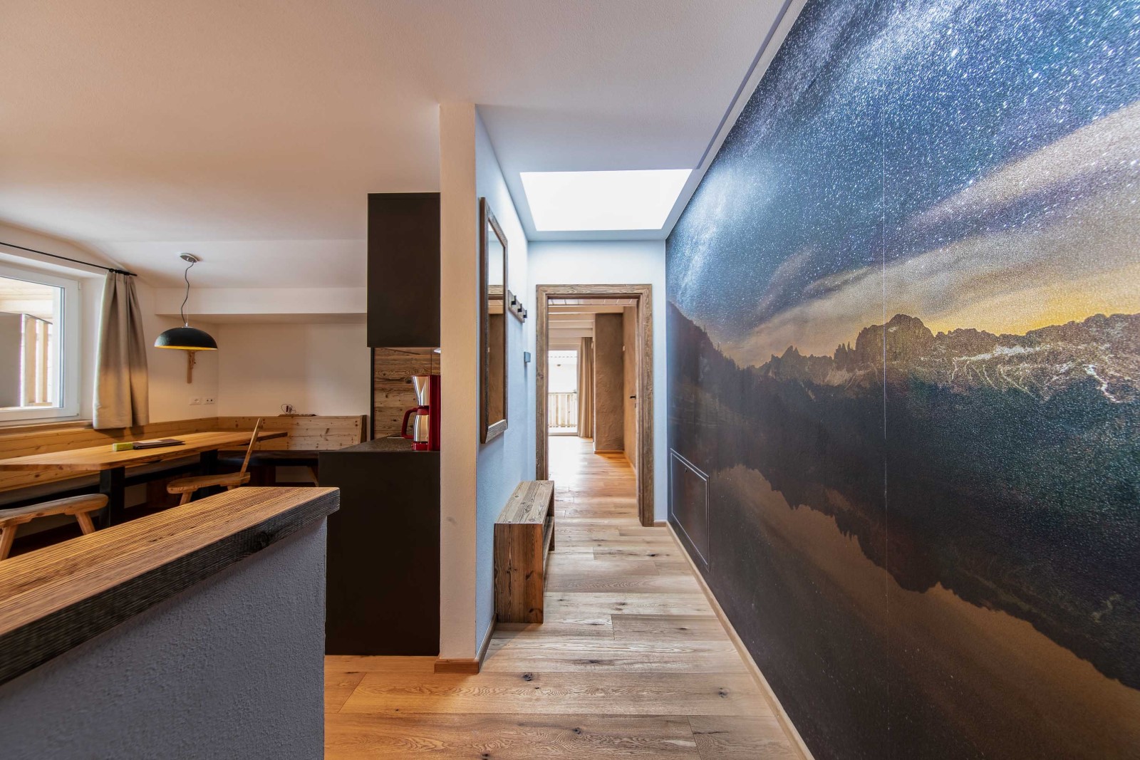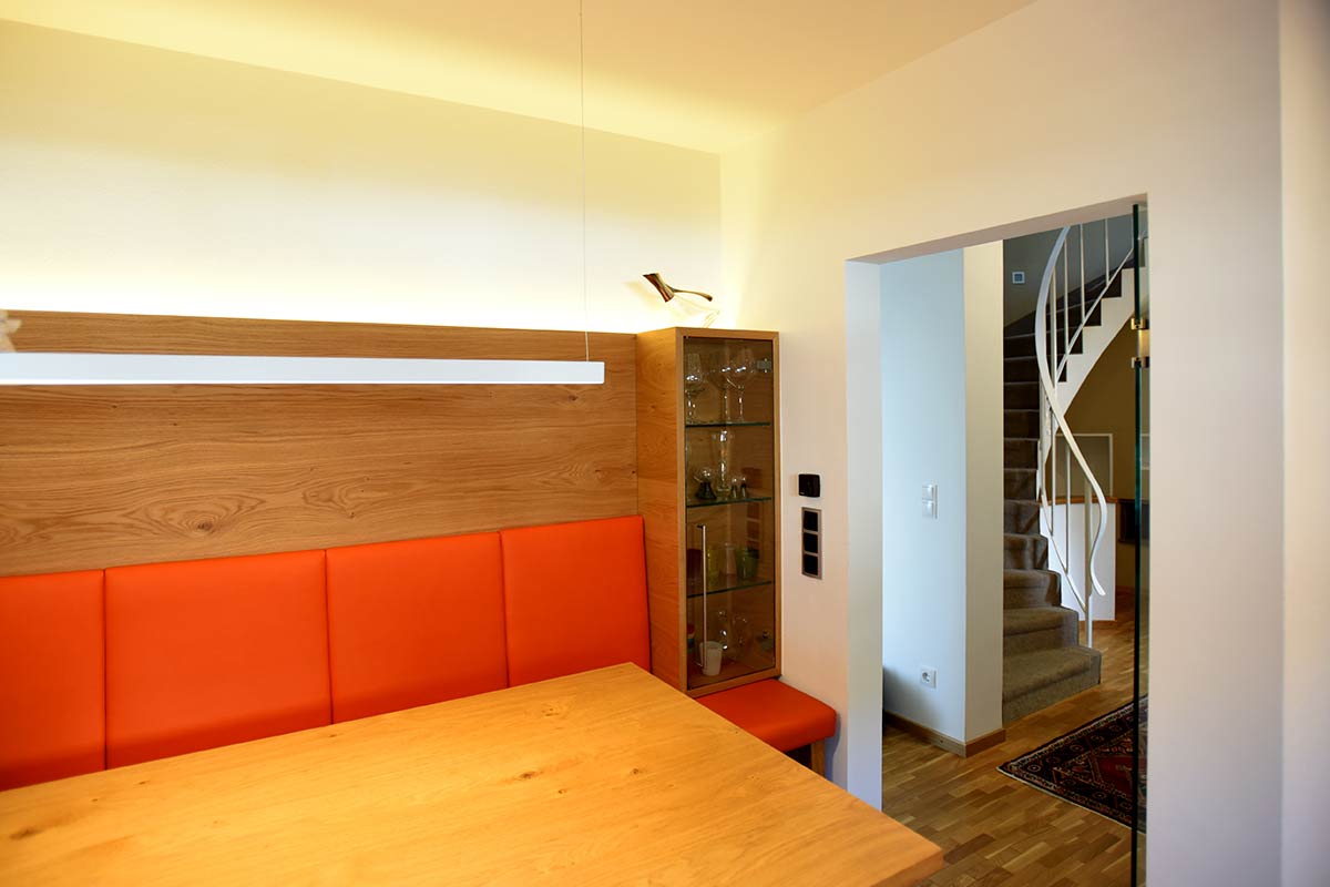 Lavori eseguiti: nuova progettazione della facciata, verniciatura degli elementi in legno, posa delle piastrelle, lavori di pittura e cartongesso.